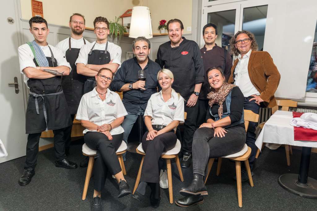 Hanspeter Hussong und Ines Hussong waren Jahrelang im Wiesengrund in Uetikon als Maitre des Hauses tätig. Seit 2019 haben sie sich aber zu Ruhe gesetzt und machten für uns im Gasthaus zur Brugg eine Ausnahme. Hans Peter Hussong hat uns mit einem leckeren 5-Gänge Menü überrascht, aber auch als Mentor für unsere ganze Küche in dem er uns diverse Sachen gezeigt und ausprobiert hat mit uns. Es war eine riesen Erfahrung für uns alle.